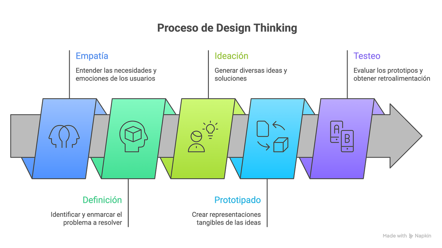 La relación entre design thinking e inteligencia artificial no es solo instrumental (usar IA dentro del proceso), es estructural.