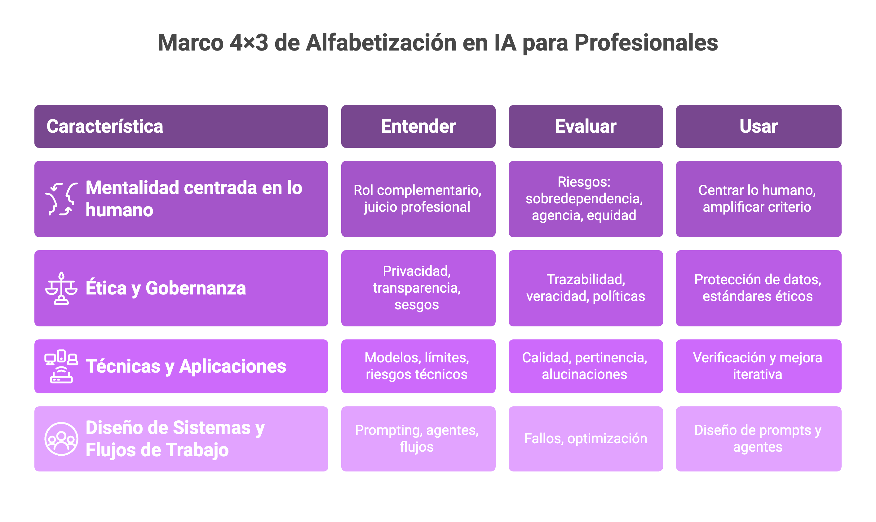 Un marco 4×3 para alfabetizar en IA sin perder lo humano
