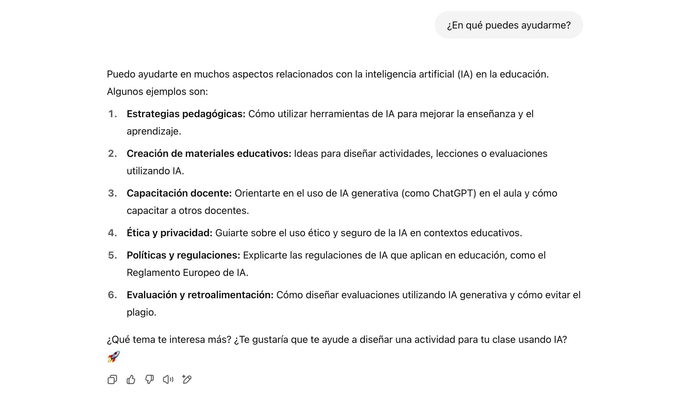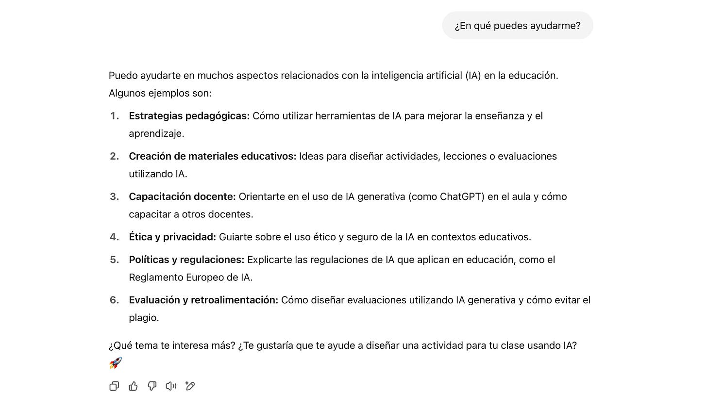Resolver dudas sobre inteligencia artificial aplicada a la educación.